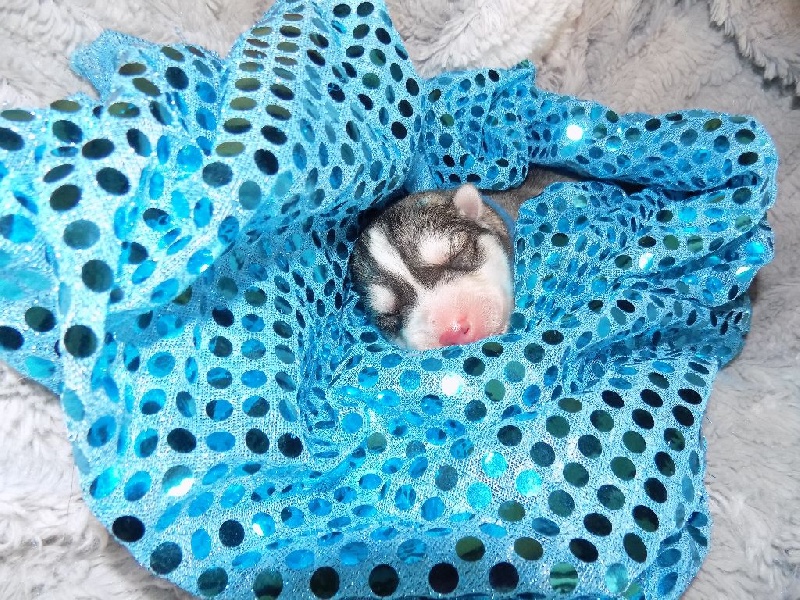 Mâle collier bleu (gris et blanc, yeux marrons). 410 grammes à la naissance. Je m'appelle Naïko