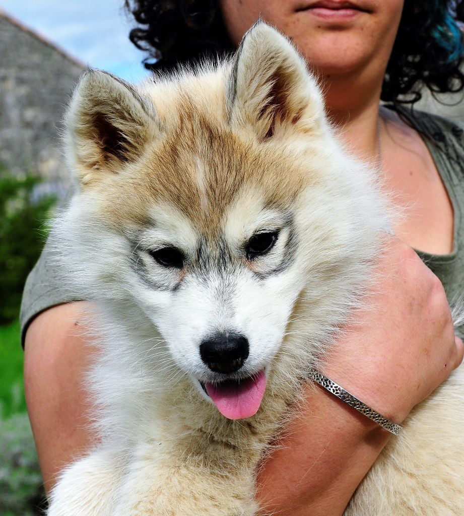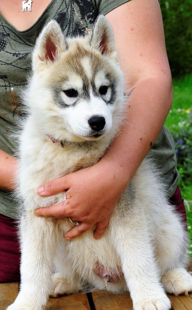 Femelle collier rose (grise et blanc, yeux bleue). 410 grammes à la naissance. Je m'appelle Nanook